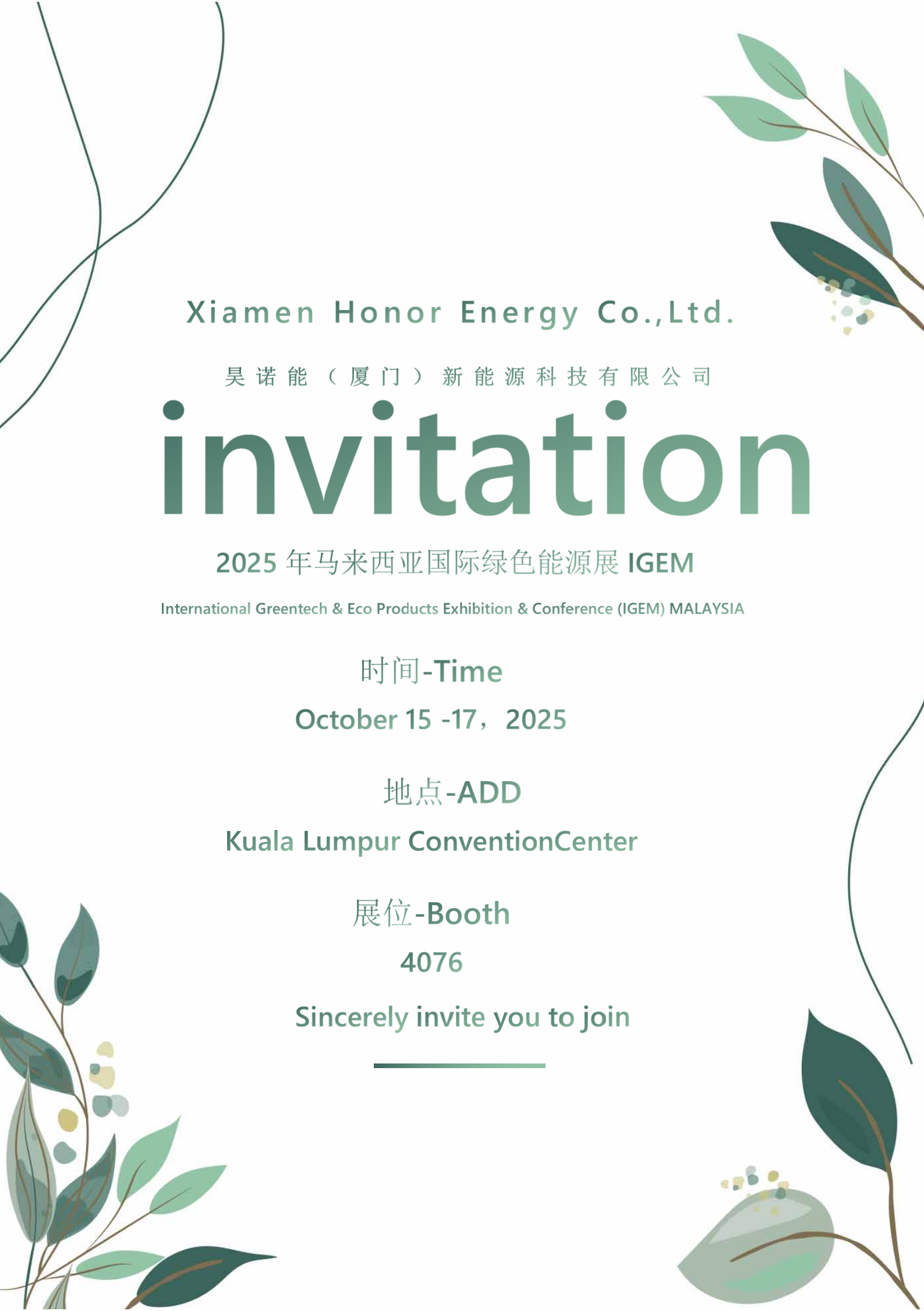 Gukpozik daude2025 Malaysiako Energia Berdearen Nazioarteko Erakusketarako (IGEM) gure gonbidapen ofiziala iragartzeko.